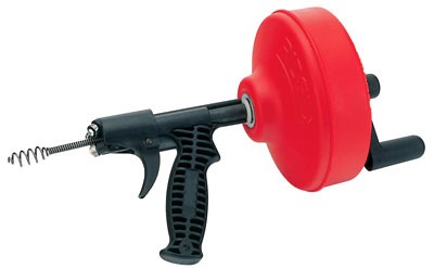 - Оборудована прочной 6 мм х 7,6 м спиралью с автоподачей (нажмите на курок и крутите барабан - спираль сама пойдет в трубопровод)