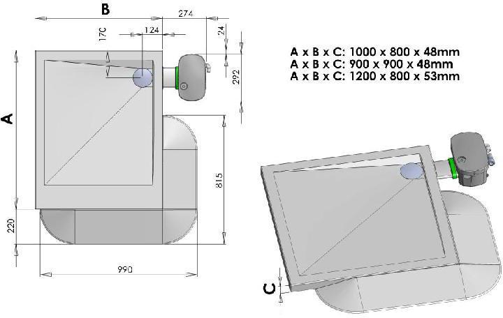 | Размеры Д х Г х В, мм | 1000x800x53 - 900x900x53 - 1200x800x53 |